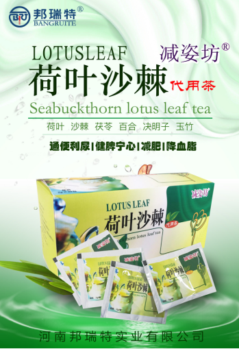 邦瑞特牌荷叶沙棘代用茶,QS保健食品批文,具有降血压、降血脂、降血糖、增强机体的免疫力;具有补中益气、降低心肌耗氧、增加心肌供血、加强心脏功能、保肝护肝等广泛的保健作用;荷叶中含有的荷叶碱和荷叶黄酮具有明显的降甘油三酯降胆固醇,有利于糖尿病人长期降糖。