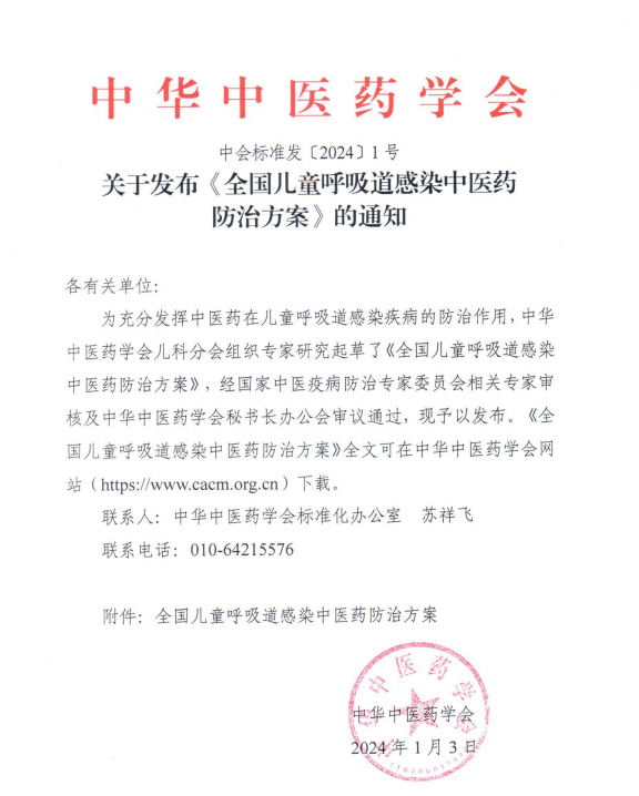 连花清瘟、连花清咳列入《全国儿童呼吸道感染中医药防治方案》