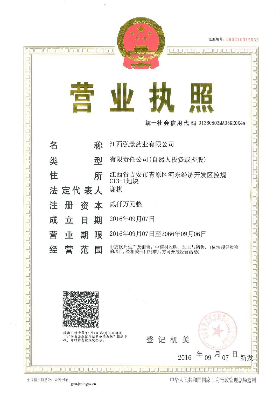 批准文号:生产许可证:赣20170003