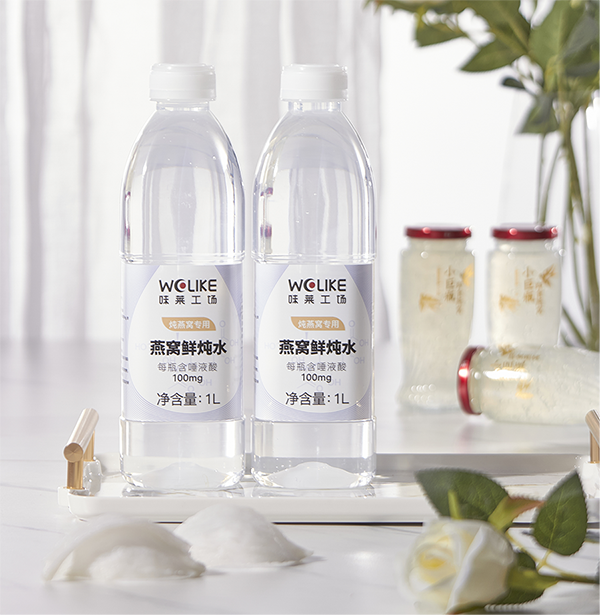 鲜炖燕窝水(炖燕窝专用)专业人士炖燕窝 都用燕窝鲜炖水,这款鲜炖燕窝水的爆点在于,消费者对手作鲜炖燕窝的喜欢大于工厂标准化生产,而实体或工作室手作,不管是从炖法还是含量,都大同小异,无法与之区别,所以这个时候客户都以价格考量来选择,这样的做法也无疑让所有的手作商家越走越窄,想要与其他商家形成差异化,那必须在每个细节都有卖点及亮点,比如味莱(工场)行业首创的这款鲜炖燕窝水,是专门针对滋补鲜炖手作的商家来量身打造的,明确这是一款针对鲜炖燕窝商家的专业用水,专业人士炖燕窝必备的燕窝鲜炖水,每瓶含唾液酸100mg,也是判断鲜炖燕窝品质的重要指标之一,为产品独添独一无二的竞争优势,让鲜炖燕窝的营养价值远超同行。