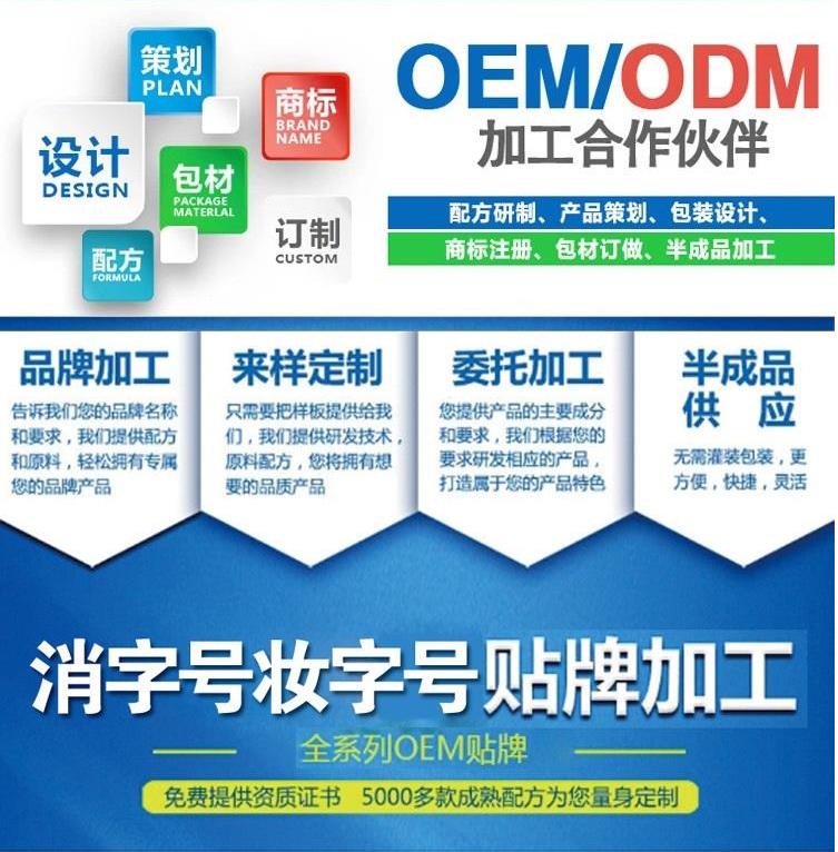 1、客户自带品牌并提供包装材料,其余由我方提供(如配方、产品加工等);