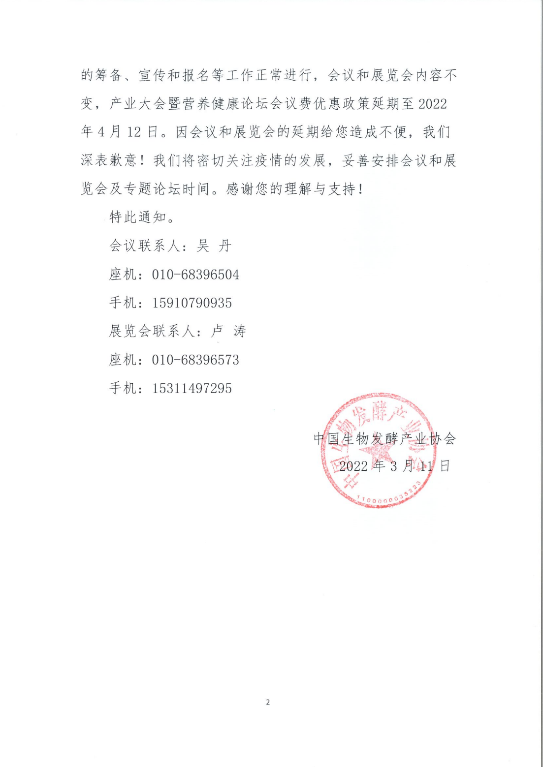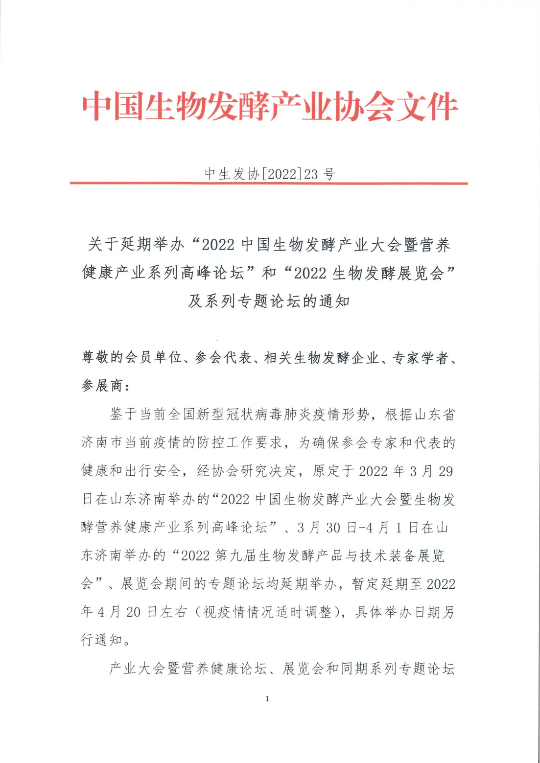 关于“2022第九届生物发酵产品与技术装备展览会(济南)”及同期系列论坛延期的通知 2022/3/15 14:30:16 来源:千虹医药网