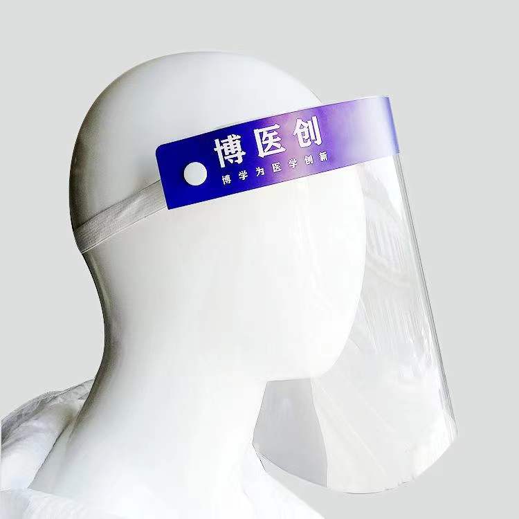 打开包装,取出医用隔离面罩,将防护罩上的保护膜揭下,防护罩戴于面部,调整弹力带至舒适状态