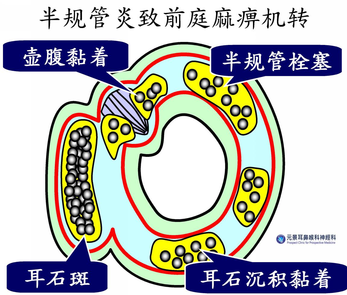 图说二:感染性半规管炎致前庭麻痺机转,症状很像前庭神经炎。