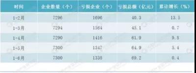 据中商产业研究院最新数据显示:截止2019年6月底,我国医药行业规模以上企业数量达到7300家,其中亏损企业数量1338家,亏损面18.3%,环比下降了2个百分点;2019年前1-6月医药行业亏损企业亏损总额68.2亿元,同比增长0.4%,较1-5月同期相比大幅收窄5个百分点,可见6月份开始我国医药行业开始回暖明显。