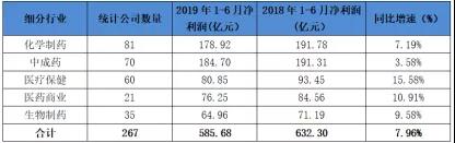 在化学药、中成药和生物制药三个制药工业细分领域,净利增速最慢的要数中成药,与其最快的增速形成反差,仅同比增长3.58%。