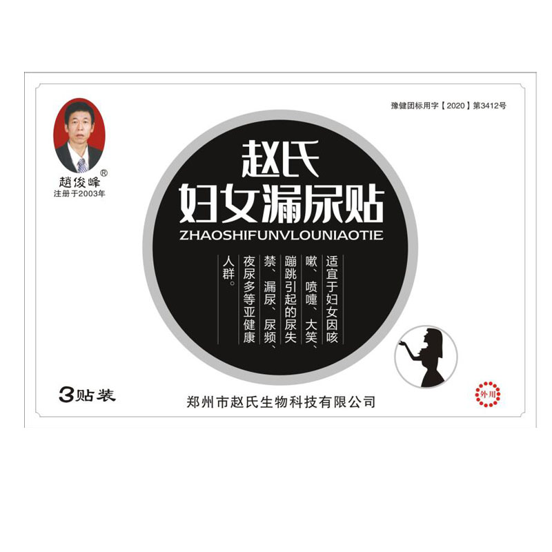 如果发现自己存在漏尿的情况,且影响到生活,那就说明说明漏尿绝对不是一件小事情,它正在悄然改变着您的生活,如果不加以控制,对你的生活将会有更严重的影响。针对妇女尿失禁、漏尿的情况,中药一般采用外敷膏药的方法,而赵俊峰膏药——赵氏妇女漏尿贴,是以五倍子、吴茱萸、煅牡蛎、小茴香、肉桂、乌梅、五味子、炮姜为原料将加工而成。适用于妇女因咳嗽、打喷嚏、大小、蹦跳引起的尿失禁、漏尿及尿频、夜尿多等亚健康人群。日常碍于面子的女性可以不用担心了,轻轻松松在肚脐上贴上一贴膏药就能摆脱长期困然女性压力性尿失禁的问题。
