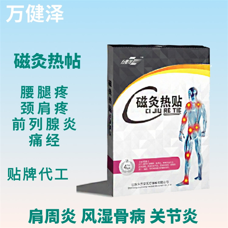 磁灸热贴是朱氏药业研发生产的一款膏药,主要适用于颈椎病、肩周炎、腰椎间盘突出、肌肉劳损、风湿性关节炎、软组织损伤(非急性期)、痛经、慢性前列腺炎的辅助治疗。