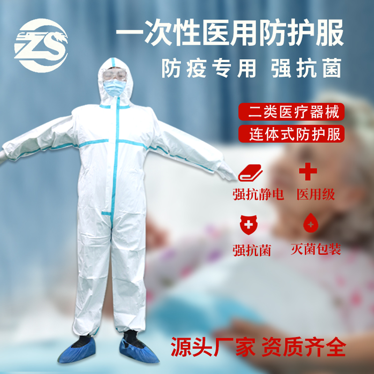医用防护服,是医护人员工作着装,隔离病菌、有害超细粉尘、酸性溶液、盐溶液,保持环境清洁。采用PP(聚丙烯,占总数的62%)无纺布材料,外覆防护服专用透气膜,透气性强,防静电;较佳的防渗透性,在抗多种有机溶剂、酸碱腐蚀的同时,具有较高的耐冲击性。机械性质强韧,质地柔软舒适。不助燃、无毒无刺激性,对皮肤无害。
