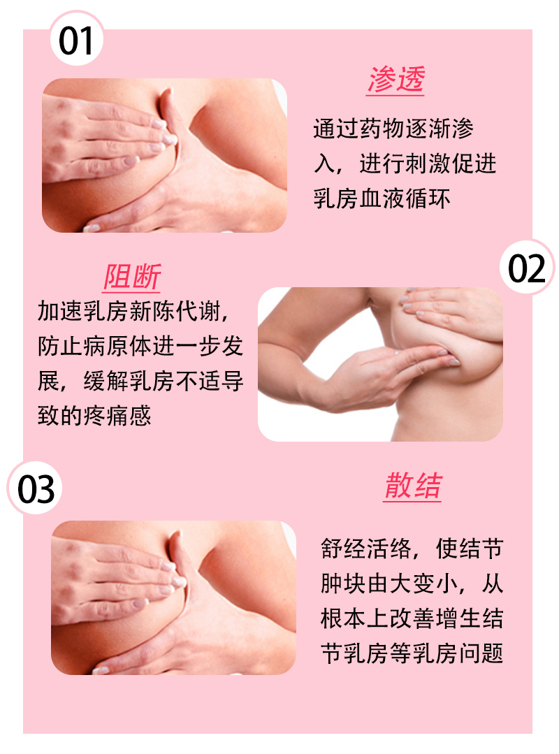 乳腺贴是目前临床上常用的利用现代技术,采用中医中药及先进的卫生材料所制成的膏药贴。本贴主要就是通过对局部穴位进行贴敷,从而达到疏肝理气,活血化瘀,软坚散结,导滞消炎的作用,进而从整体上调整机体气血阴阳平衡,维持女性正常的内分泌功能,保持正常的月经周期,从而达到疏通乳络之功,对于治疗乳腺增生,乳腺结节等乳腺疾病有比较显著的效果。