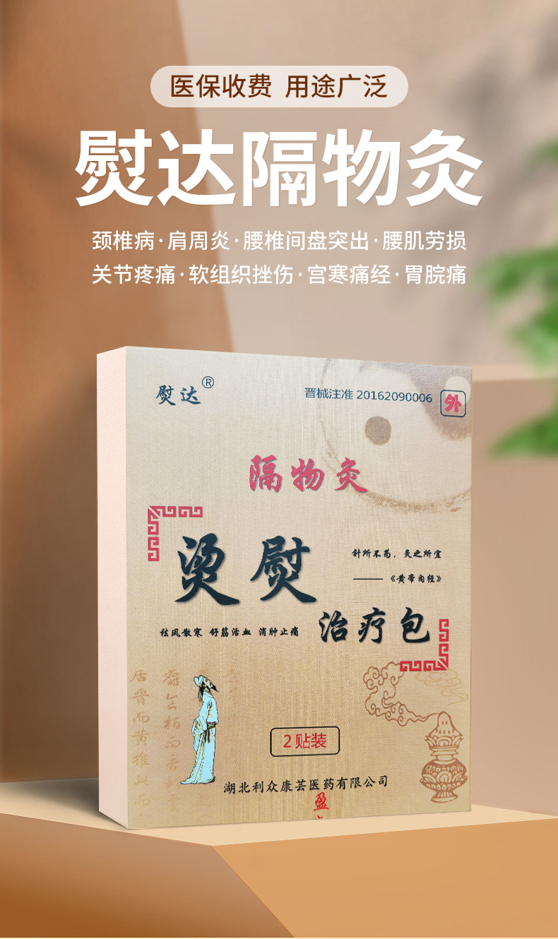 用于颈椎病、肩周炎、腰椎间盘突出、腰肌劳损、关节疼痛、软组织挫伤、妇女痛经宫寒等症状。