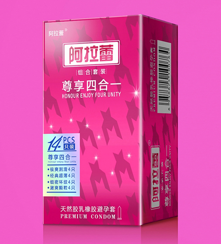 阿拉蕾尊享四合一天然胶乳橡胶避孕套