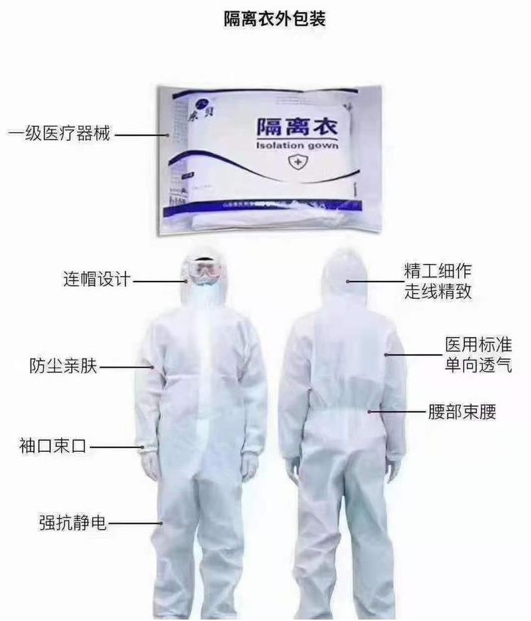 我们公司的隔离衣属于一类医疗器械,它是由无纺布材料加工而成,20件一箱,隔离衣它干燥、清洁、无霉菌。我们公司的隔离衣表面不允许有粘连和裂缝。我们隔离衣的证件也是齐全的。